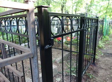 В первую очередь убираем кресты и старую лавочку. Чистим ограду от старой краски.