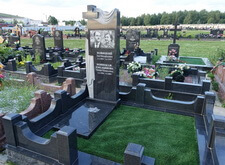 В данном заказе необходимо было изготовить памятник, достаточно не стандартной формы. Нанести изображение усопшей пары. Кроме этого на надгробной плите необходимо было нанести фамильный герб.
