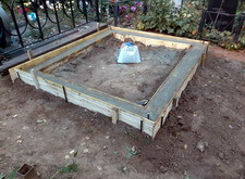 Дождавшись окончательного высыхания раствора, мы разобрали деревянную опалубку и облицевали бетонный цоколь полированными плитами из чёрного гранита.