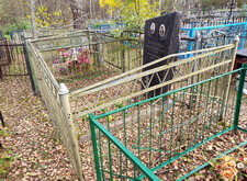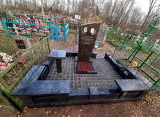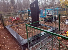 Дождавшись окончательного высыхания брусчатки вновь приезжаем на участок. Там мы восстанавливаем надписи на надгробье, размещая у его подножья восьмиконечный крестик. На этом наша работа на данном участке окончательно завершена. В результате из ничем не примечательной могилы появился презентабельный мемориальный комплекс, декорированный столиком и двумя лавочками в оградке.